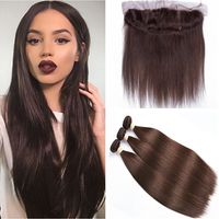 4 Dark Brown Peruvian Human Hair Silky Straight Weave Bundles With Frontal Chocolate Brown Hair Wefts With 13x4 Full Lace Frontal Closure