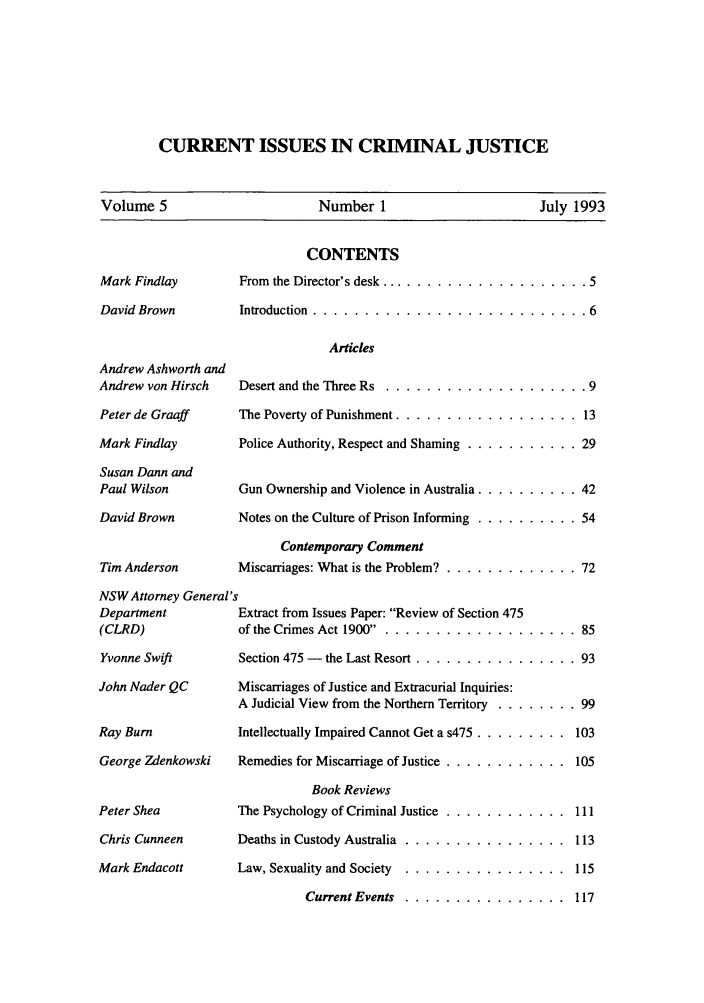 Table Of Contents Issue 1 5 Current Issues In Criminal