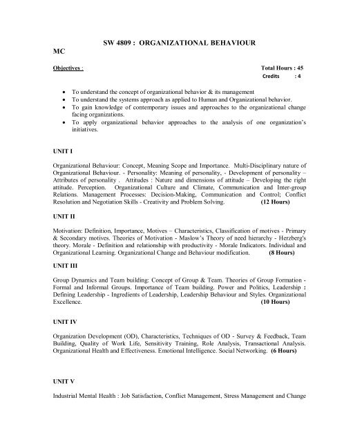 Sw 4809 Organizational Behaviour Mc Loyola College