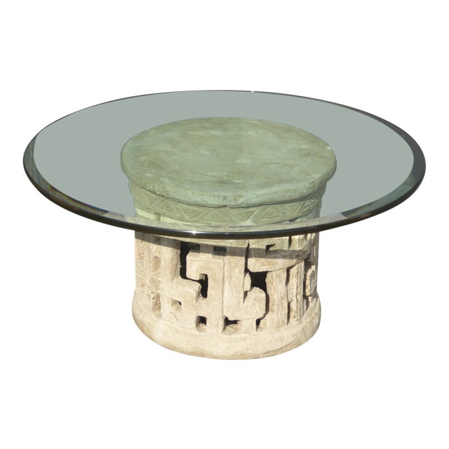 Vintage Plaster Contemporary Coffee Table Base With Beveled Edge Glass Top