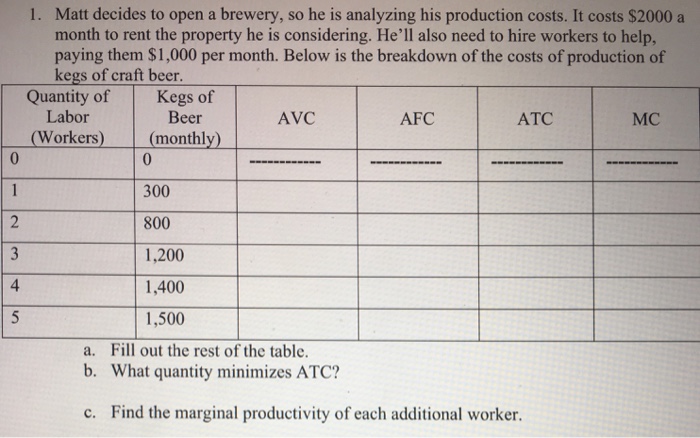 Solved Matt Decides To Open A Brewery So He Is Analyzing